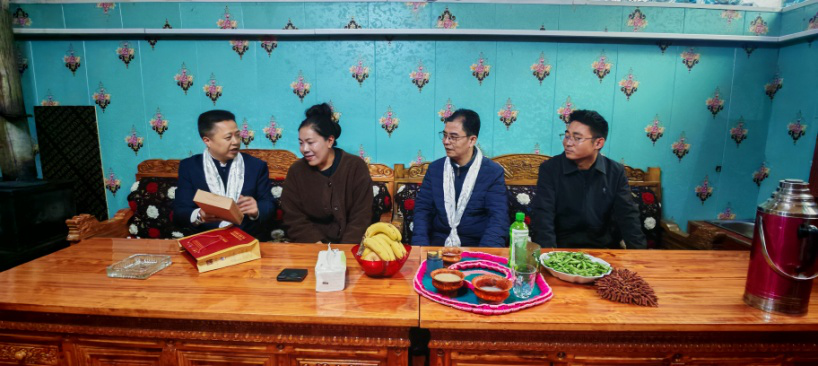 考察團(tuán)一行隨即前往山南市隆子縣調(diào)研,與隆子縣委書(shū)記李寧、縣委常委、統(tǒng)戰(zhàn)部部長(zhǎng)嘎瑪?shù)┰龅阮I(lǐng)導(dǎo)進(jìn)行了會(huì)談。趙穎君一行在縣委常委、統(tǒng)戰(zhàn)部部長(zhǎng)嘎瑪?shù)┰?、副部長(zhǎng)索朗巴珠的陪同下,翻越了三座海拔超5000米山峰,深入隆子縣斗玉珞巴民族鄉(xiāng)、玉麥鄉(xiāng)、扎日鎮(zhèn)等鄉(xiāng)鎮(zhèn)及村,不僅學(xué)習(xí)了蔵區(qū)同胞的愛(ài)國(guó)主義思想、情懷與精神,而且考察了茶葉加工廠、了解藏區(qū)本地小眾茶的生產(chǎn)、區(qū)內(nèi)區(qū)外茶消費(fèi)情況等,與此同時(shí),還走進(jìn)藏民同胞家中,代表益陽(yáng)市委統(tǒng)戰(zhàn)部贈(zèng)送“湘益”茯茶、表達(dá)了益陽(yáng)人民的熱情厚愛(ài)與對(duì)藏區(qū)人民的美好祝福。