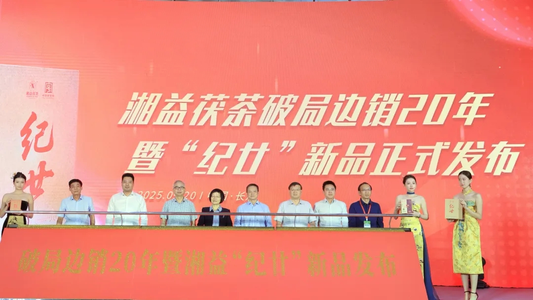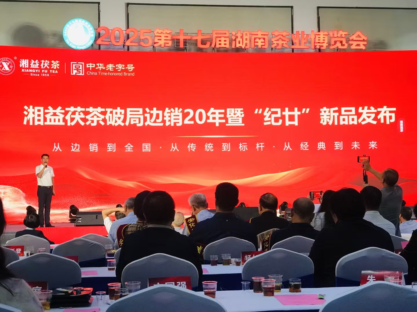 發(fā)布會現(xiàn)場,益陽茶廠總經(jīng)理助理袁緒斌詳細闡述了"紀廿"新品的研發(fā)背景與產(chǎn)品理念。二十年前,益陽茶廠懷著讓茯茶香飄萬里的初心,開啟了從邊銷茶到內銷健康飲品的轉型之路,由劉杏益大師團隊率先突破"高端原料發(fā)花"技術難關,研制出中國第一片中高檔茯磚茶[一品茯茶、極品茯茶、湘益茯茶],從此改寫了茯茶的歷史軌跡。2025年,是湖南黑茶內銷20周年,益陽茶廠以「紀廿」之名,致敬二十載工藝傳承與內銷啟航,“紀”為紀念、紀元;“廿”為二十,紀念二十年,「紀廿」禮盒將三款傳奇產(chǎn)品吉品茯茶、一品茯茶、湘益茯茶凝于一盒,開啟茯茶新紀元。