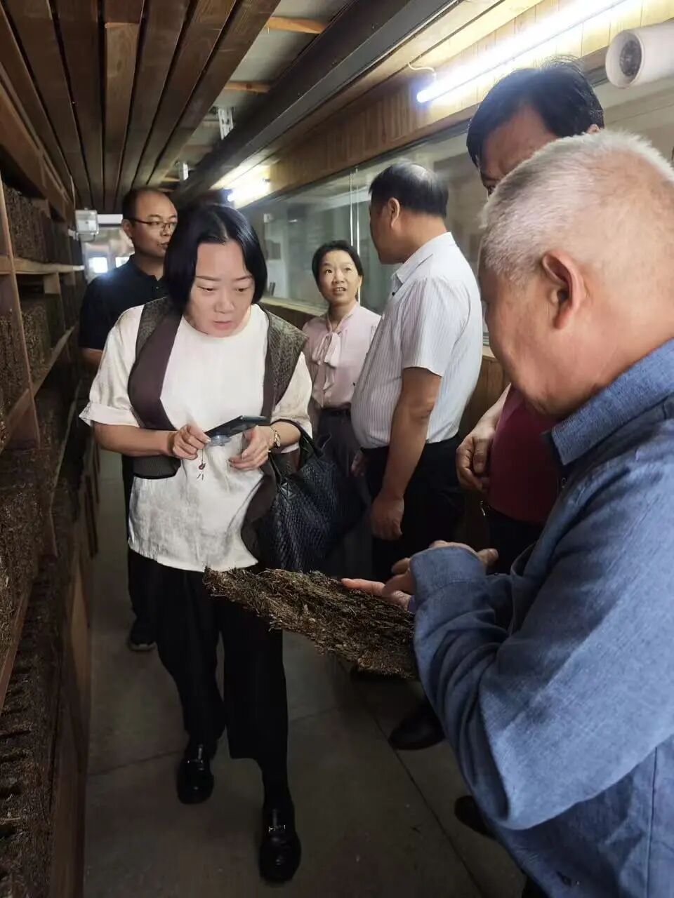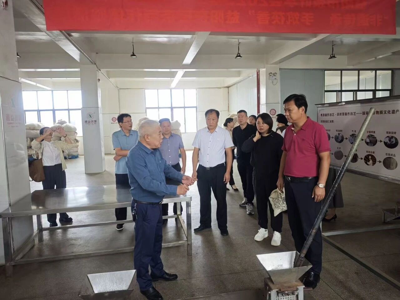 在公司總經(jīng)理余智勇,黨委書記、常務副總經(jīng)理徐迪軍,首席專家、茯磚茶制作技藝國家級非遺傳承人劉杏益等的陪同下,調(diào)研組實地考察了生產(chǎn)車間、湘益茶博館。在生產(chǎn)一線,調(diào)研組細致察看了茯磚茶的傳統(tǒng)制作工藝流程;在茶博館,深入了解了茯茶深厚的歷史底蘊與企業(yè)發(fā)展歷程。
