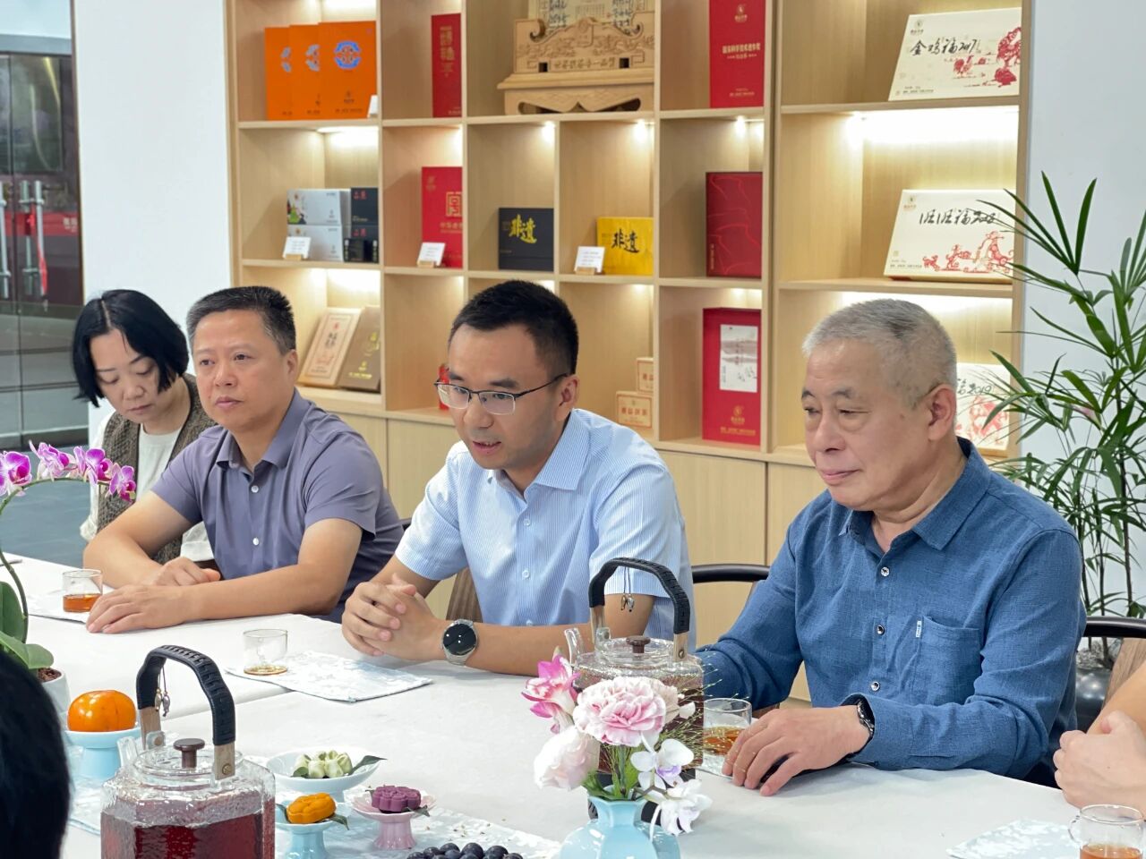 隨后,在湘益體驗館舉行的品鑒交流中,調(diào)研組與公司團隊圍繞非遺技藝的活態(tài)傳承與品牌建設等議題進行了深入探討。陳利文副處長對公司在非遺保護與傳承方面取得的成就給予充分肯定,并鼓勵企業(yè)深化“非遺+產(chǎn)業(yè)”融合發(fā)展,讓茯磚茶這一傳統(tǒng)技藝在新時代煥發(fā)更加絢麗的光彩。