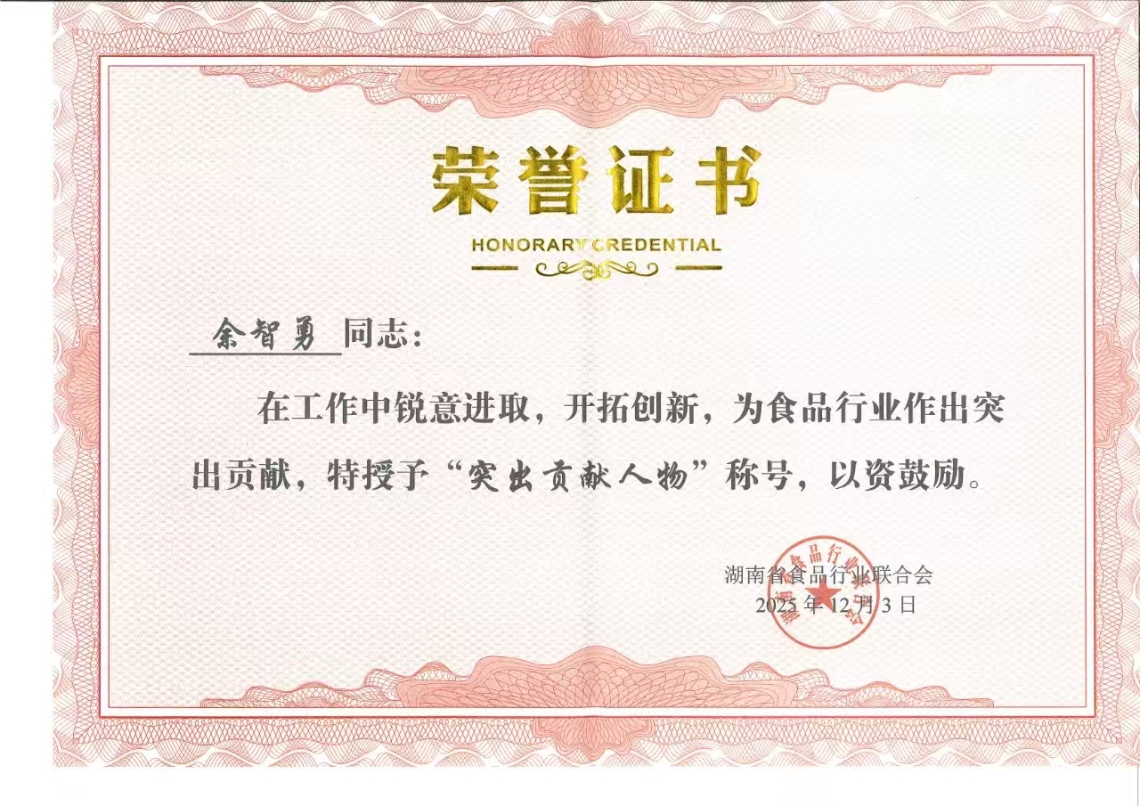 公司總經(jīng)理余智勇因在茯磚茶技藝傳承與創(chuàng)新、產(chǎn)品研發(fā)與品牌建設(shè),以及推動(dòng)食品產(chǎn)業(yè)高質(zhì)量發(fā)展等方面作出的重要貢獻(xiàn),被授予“突出貢獻(xiàn)人物”榮譽(yù)稱號(hào)。
